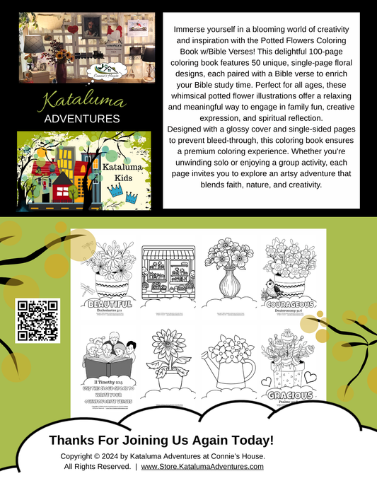 Potted Flowers w/Bible Verses Coloring Pages (PDF)